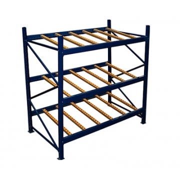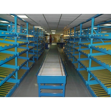 流利式倉庫貨架又稱滑移式貨架,采用輥輪鋁合金,鈑金等流利條,利用貨物臺(tái)架的自重,從一邊通道存貨,另一邊通道取貨實(shí)現(xiàn)先進(jìn)先出,存儲(chǔ)方便,以及一次補(bǔ)貨多次取貨。流利架存儲(chǔ)效率高,適合大量貨物的短期存放和揀選??膳潆娮訕?biāo)簽,實(shí)現(xiàn)貨物的輕松管理,常用滑動(dòng)容器有周轉(zhuǎn)箱,零件盒及紙箱,適合大量貨物和短期存放和揀選。適合大量貨物的短期存放和揀選。廣泛應(yīng)用于配送中心、裝配車間以及出貨頻率較高的倉庫。